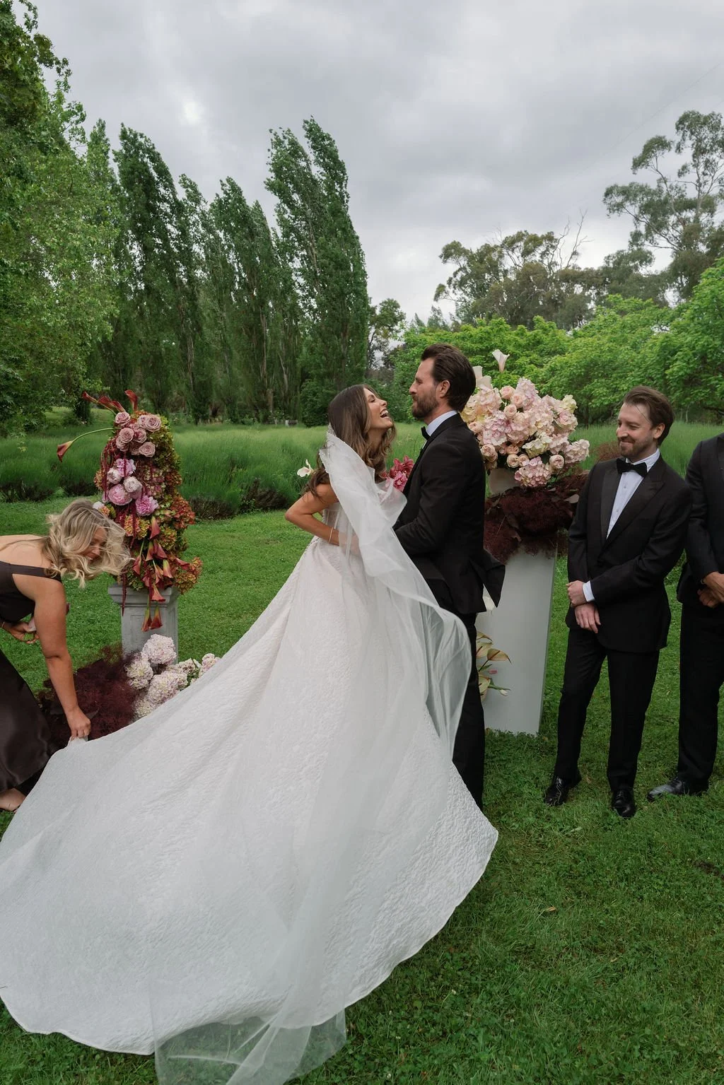 “One moment I will hold very close was when Anna was actually in Daylesford on the same weekend as my wedding and came to my bridal house to dress me. After all the fittings, discussions, and back-and-forth tweaks, it was incredibly special to have her there for that final moment, seeing the dress come together on me, ready for the day. It made the gown feel even more personal and meaningful, and it’s a memory I will cherish forever.”