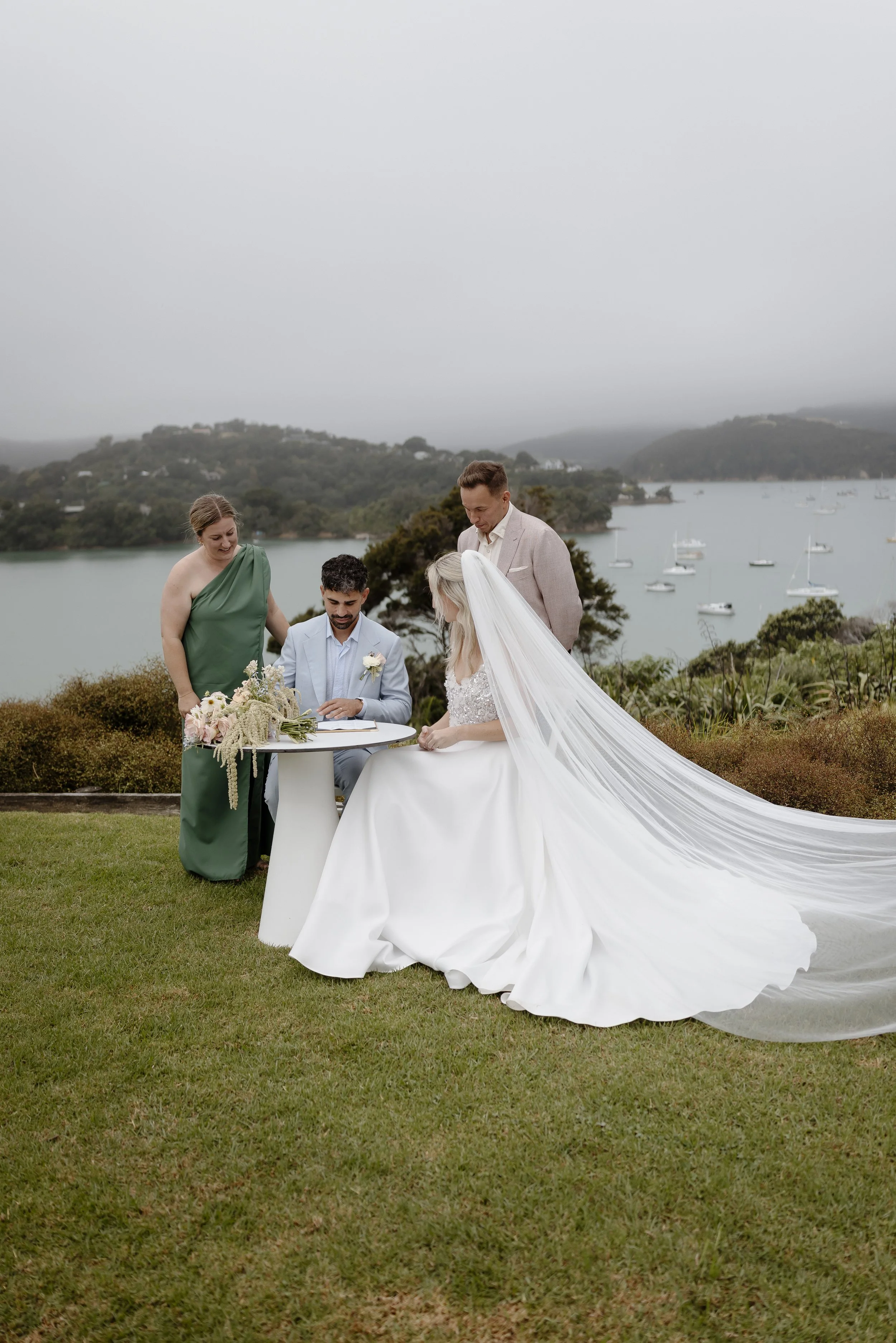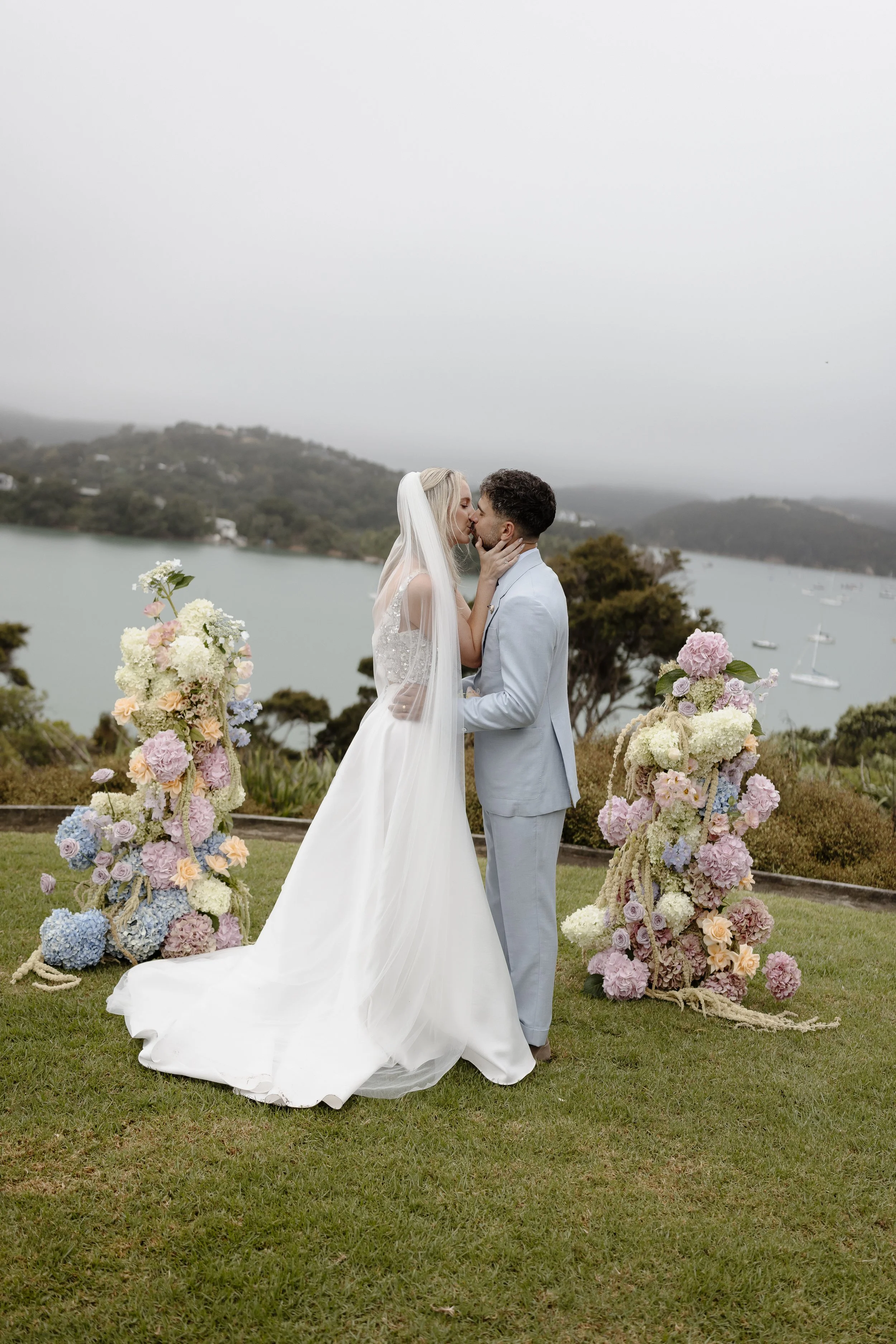 “Dave & I had been together for nearly 16 years when we got married. We knew we wanted it to be intimate and fun, so we decided to take our 12 closest friends over to Waiheke Island for 4 days to stay at the amazing Putiki Estate. On the second day we had a small ceremony on the helipad in the backyard of Putiki Estate - it was very casual and intimate, with lots of laughs and happy tears.