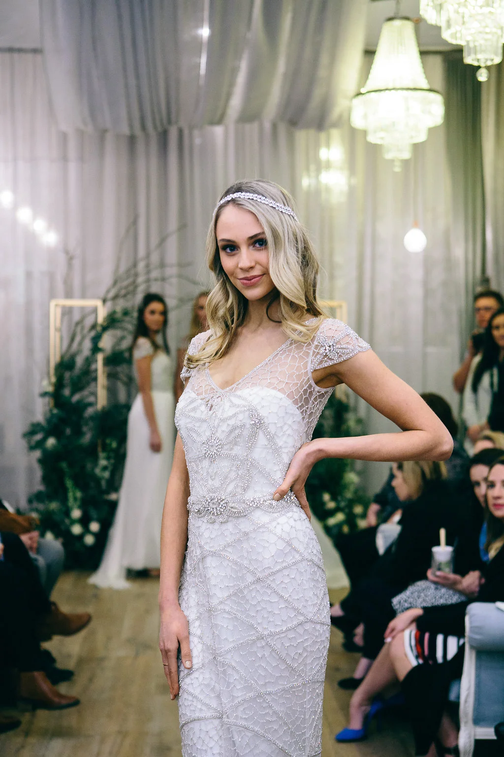 Media and guests were treated to the first glimpse of the Ceremony collection, which saw models adorned with sparkling headpieces, hand-embellished gowns and the inaugural range of Anna Campbell earrings, shimmering down the runway.