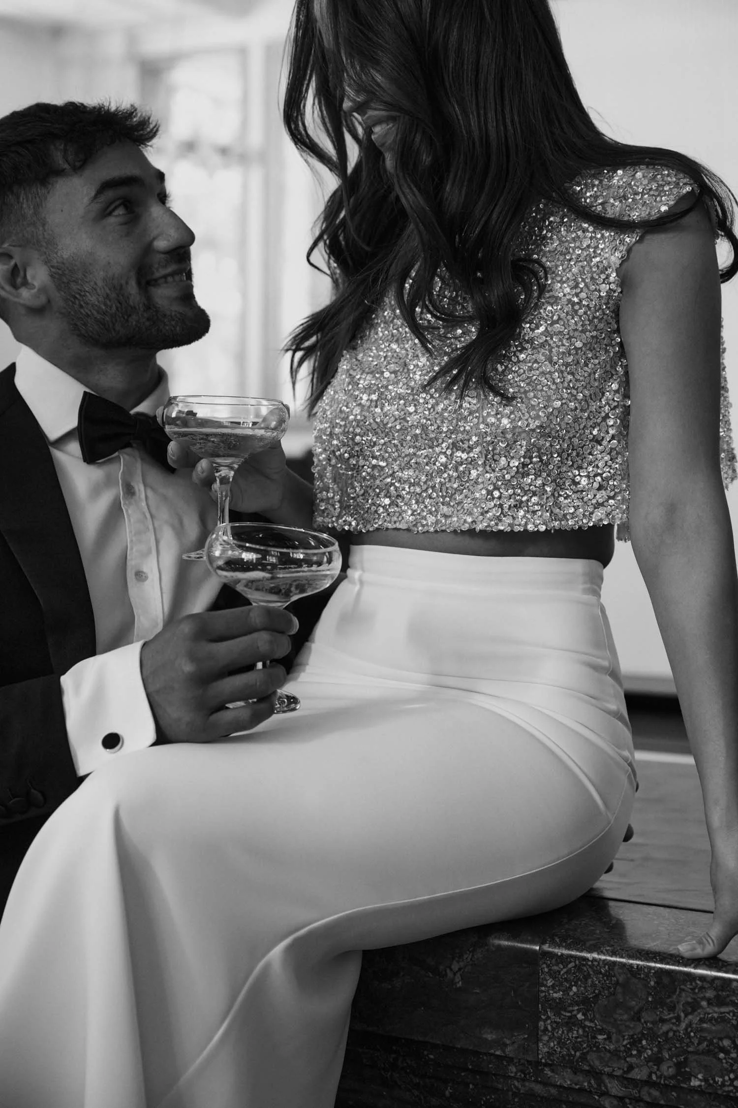 The Dominic Separate Skirt pairs flawlessly with our iconic bridal toppers—explore the collection here.