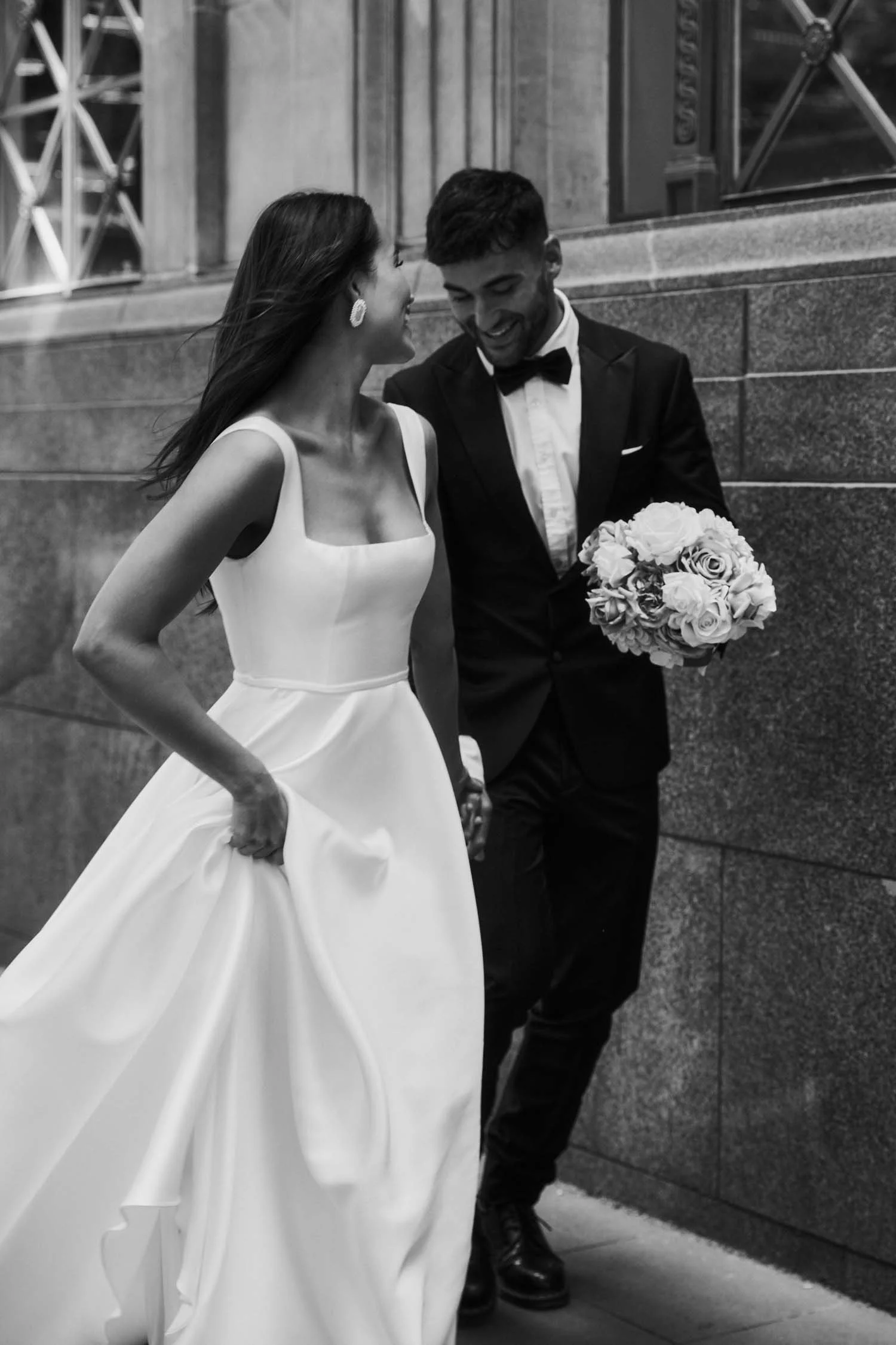 Made from high-shine Mikado, the Mila gown commands attention with bold, clean lines. A striking square neckline and sculpted waist cut a powerful silhouette, while the full skirt delivers high-impact drama with unapologetic elegance.
