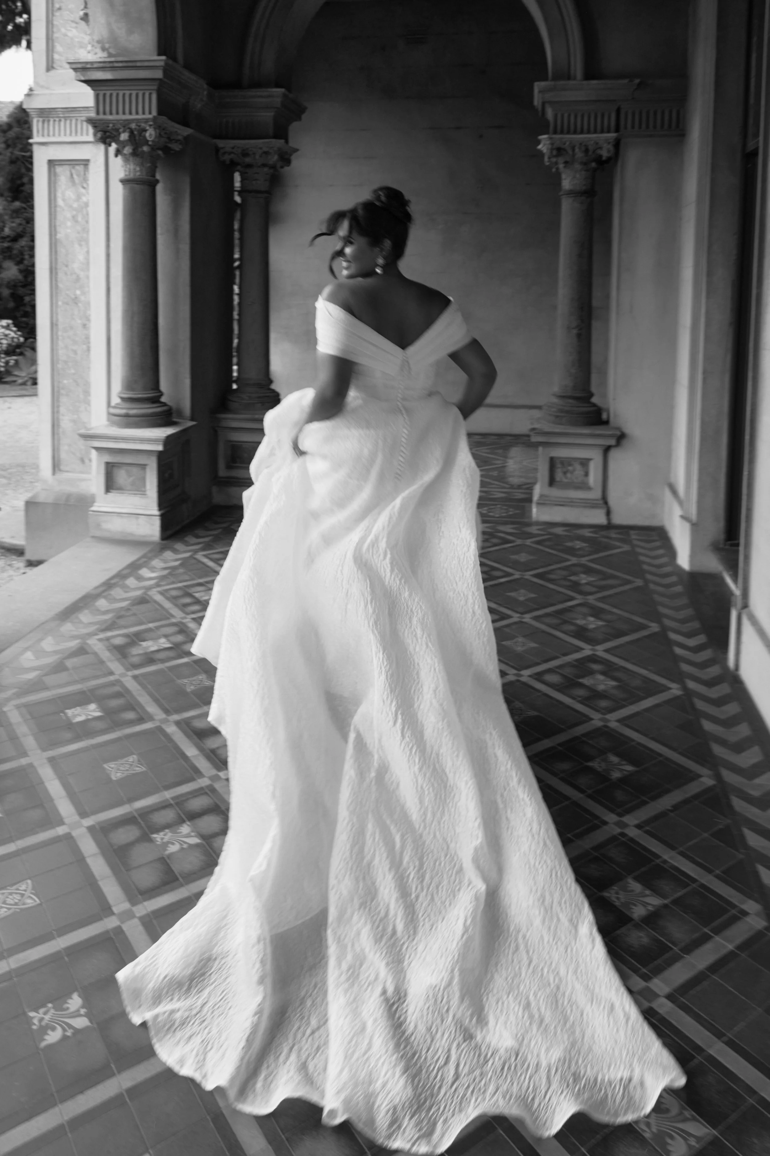Our gowns are exclusively made to order, avoiding mass production. Every order is individually crafted by hand, right here in Melbourne, for our distinctive brides. This process requires a minimum of 20 weeks to complete.